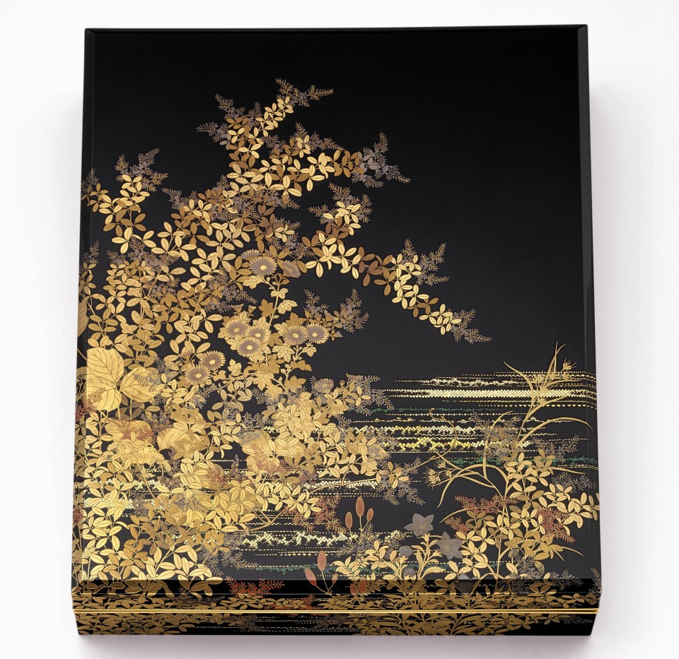 Laque hiramaki-e ettogidashi avec incrustations de nacre