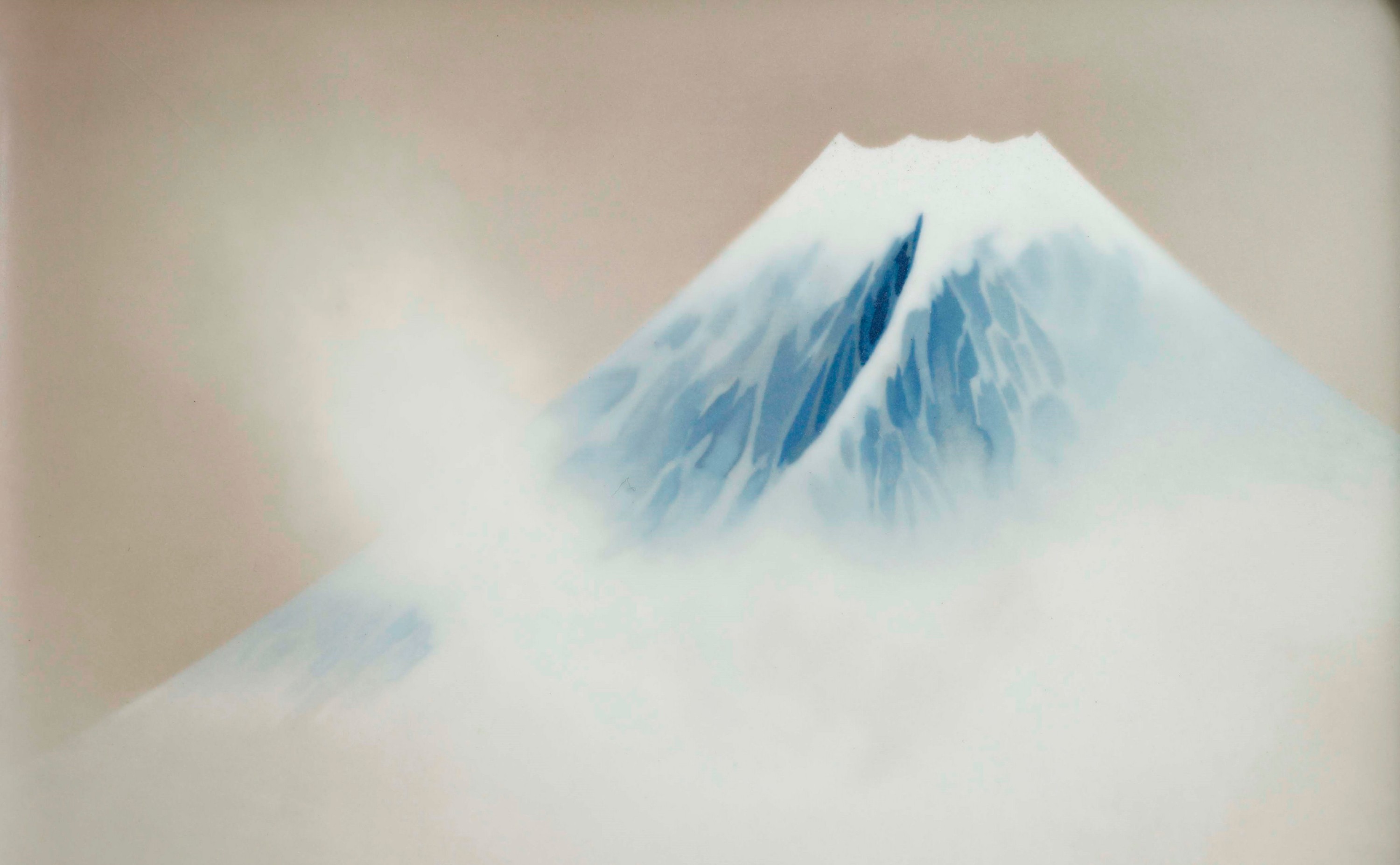 Détail d’un plateau présentant le mont Fuji. Cloisonné