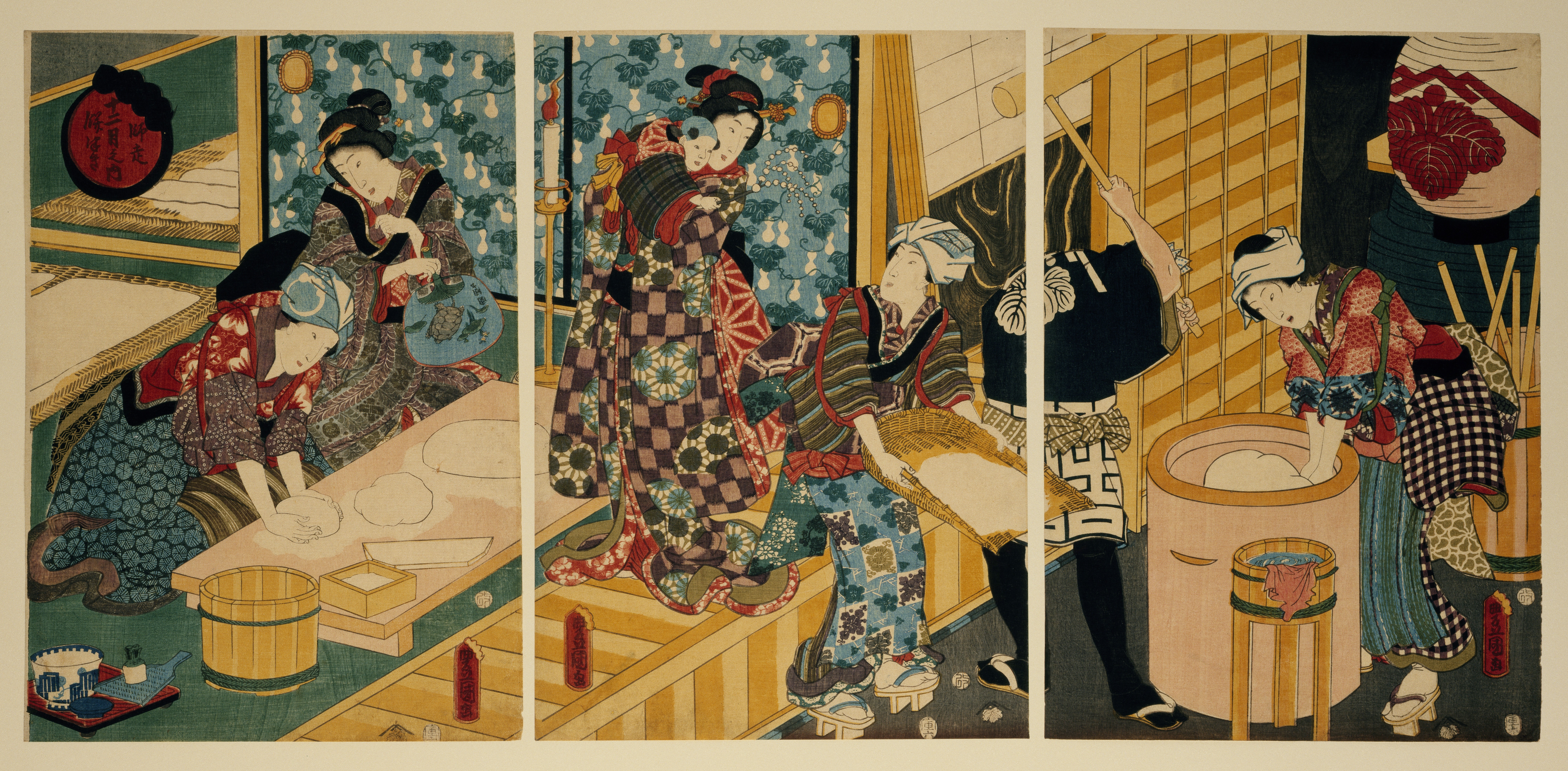 Kunisada, Fabrication des gâteaux de riz du Nouvel An