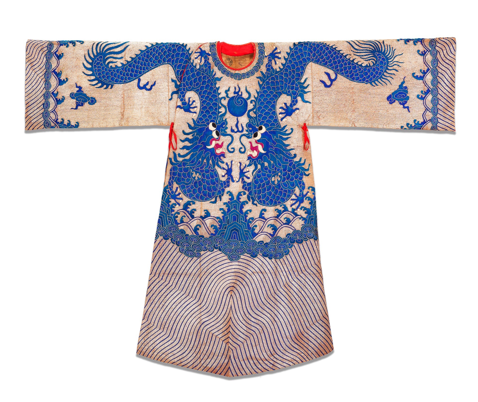 Ci-dessous : robe de théâtre à motif de dragons évoluant parmi des vagues