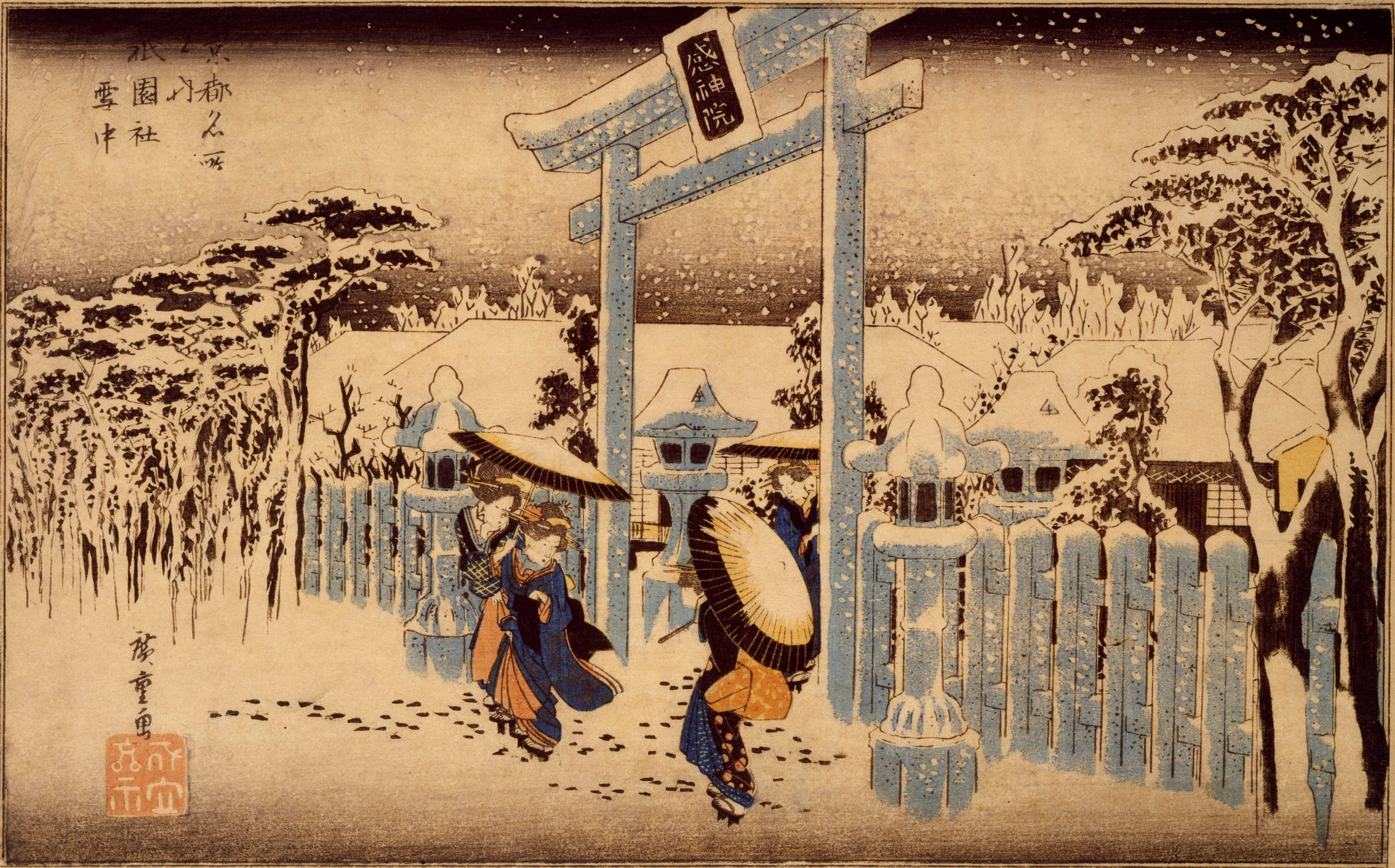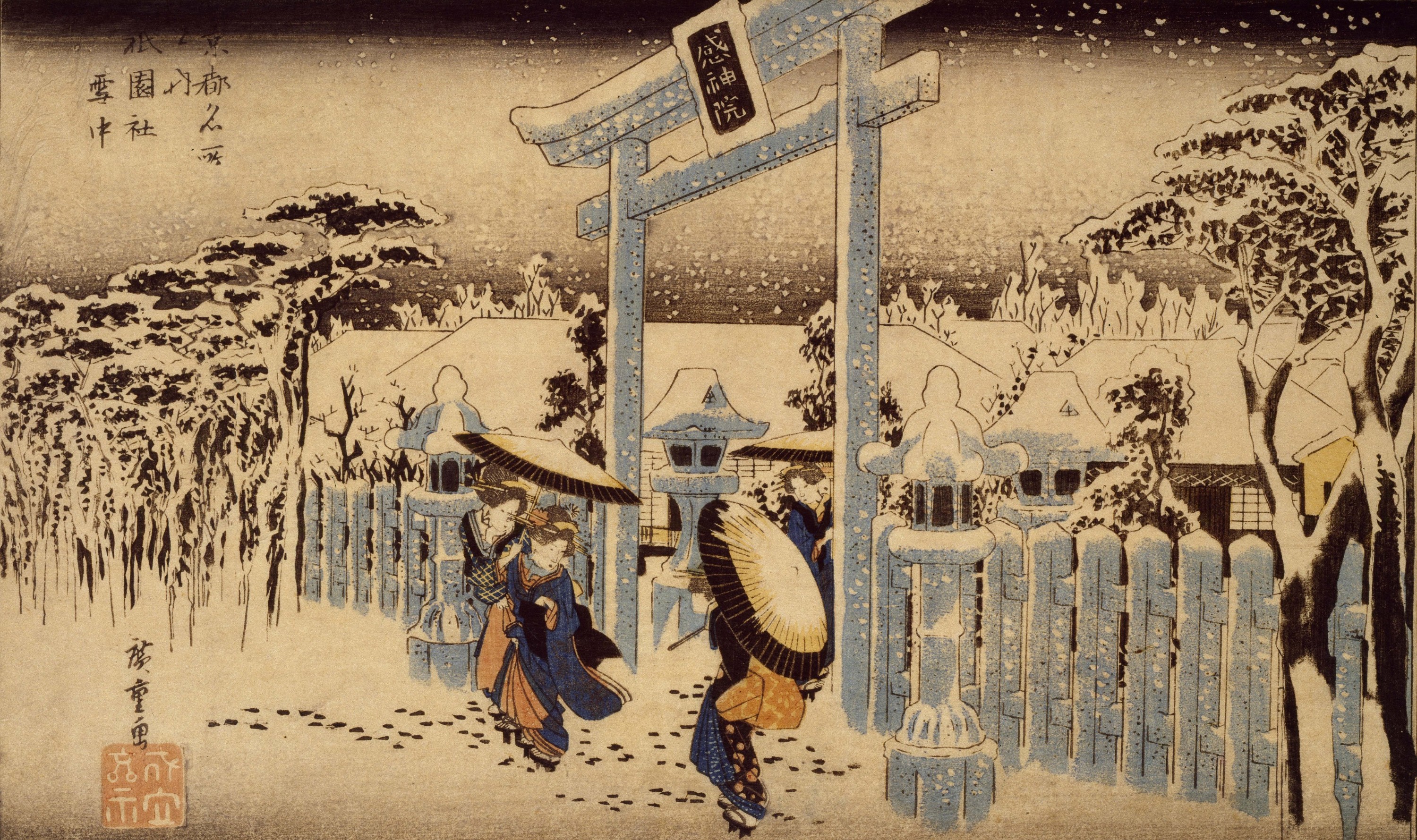 Le sanctuaire de Gion sous la neige, de la série Lieux célèbres de Kyôto