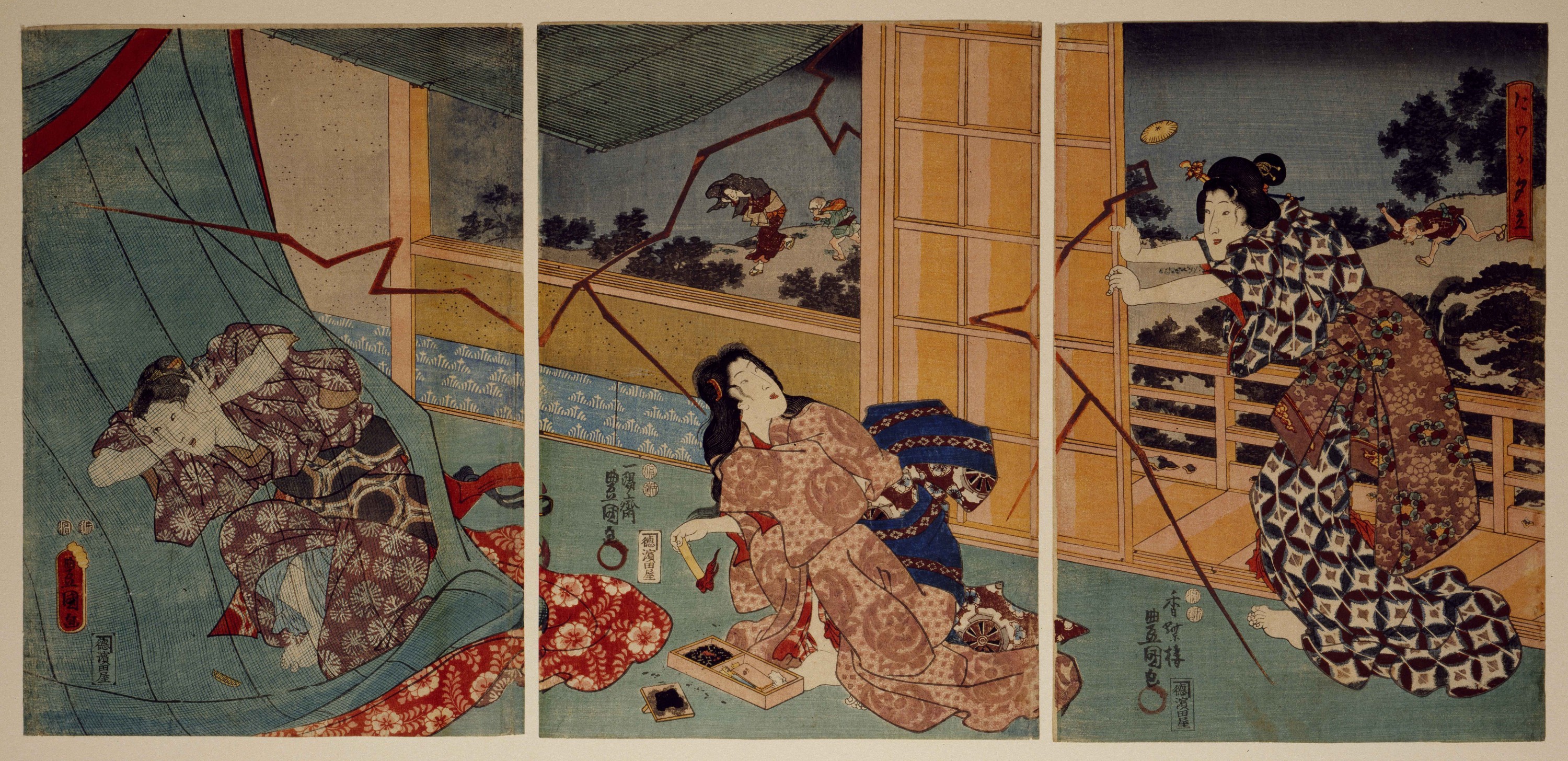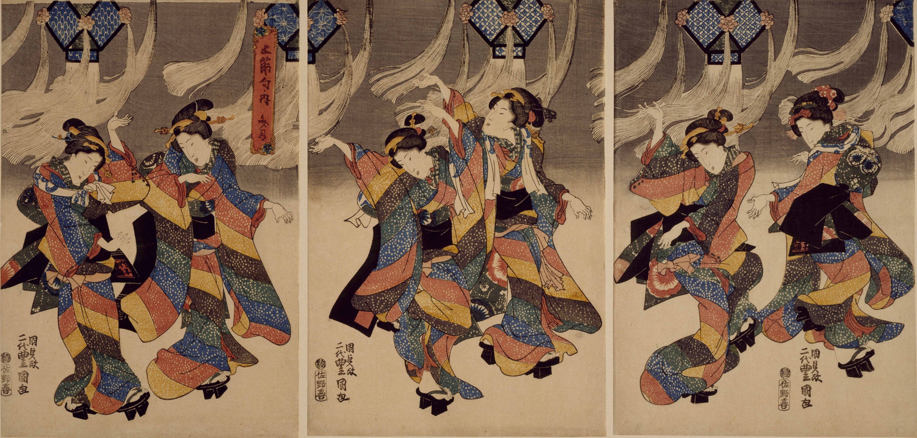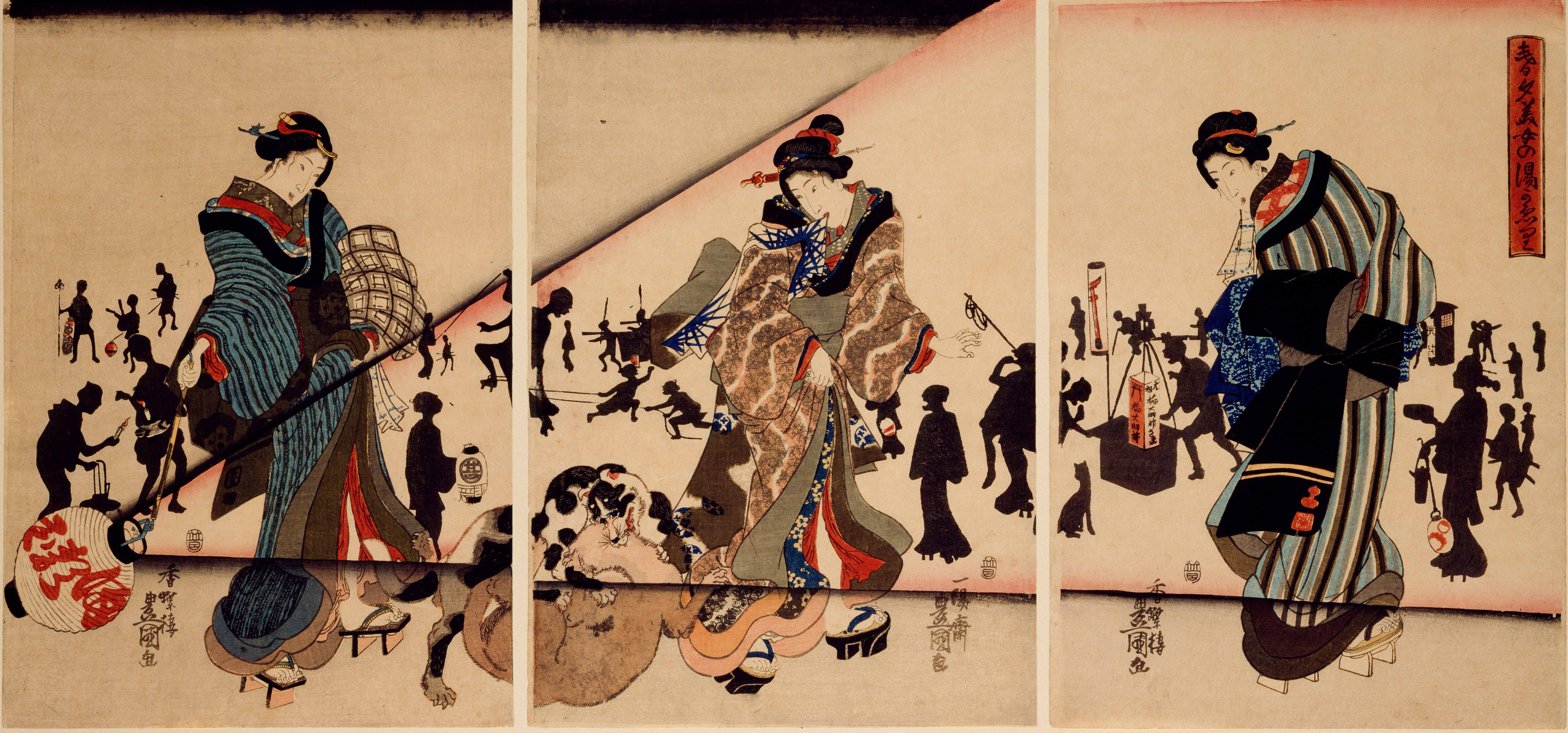 Triptyque ôban, publié chez Fujiokaya Keijirô, 1848-1850 env.