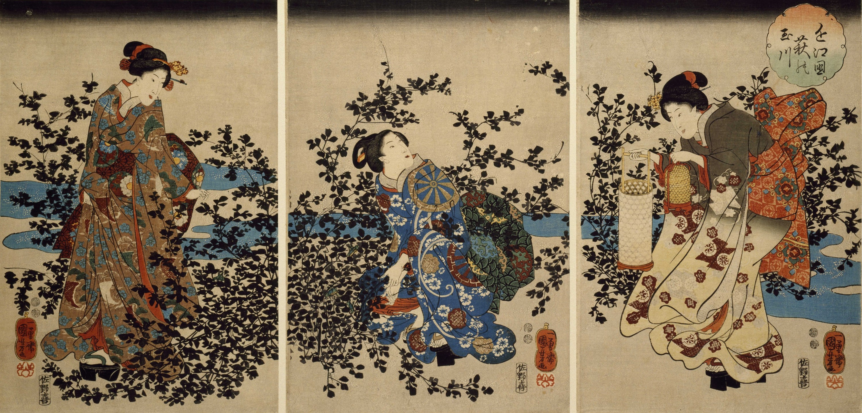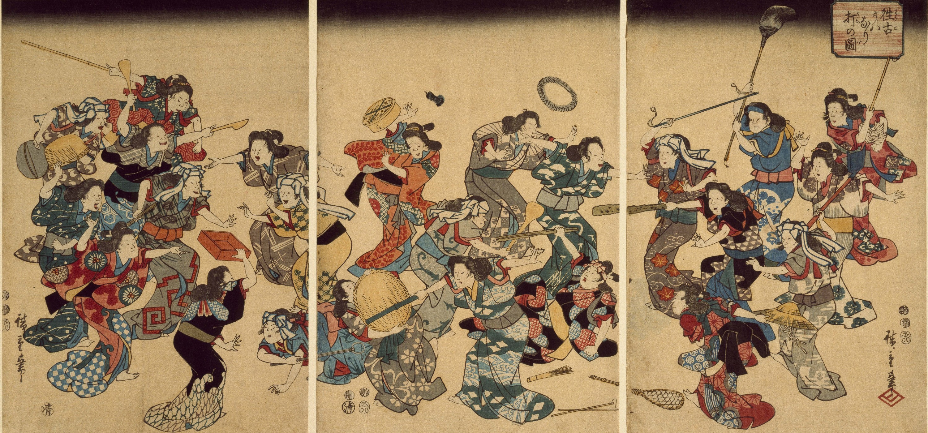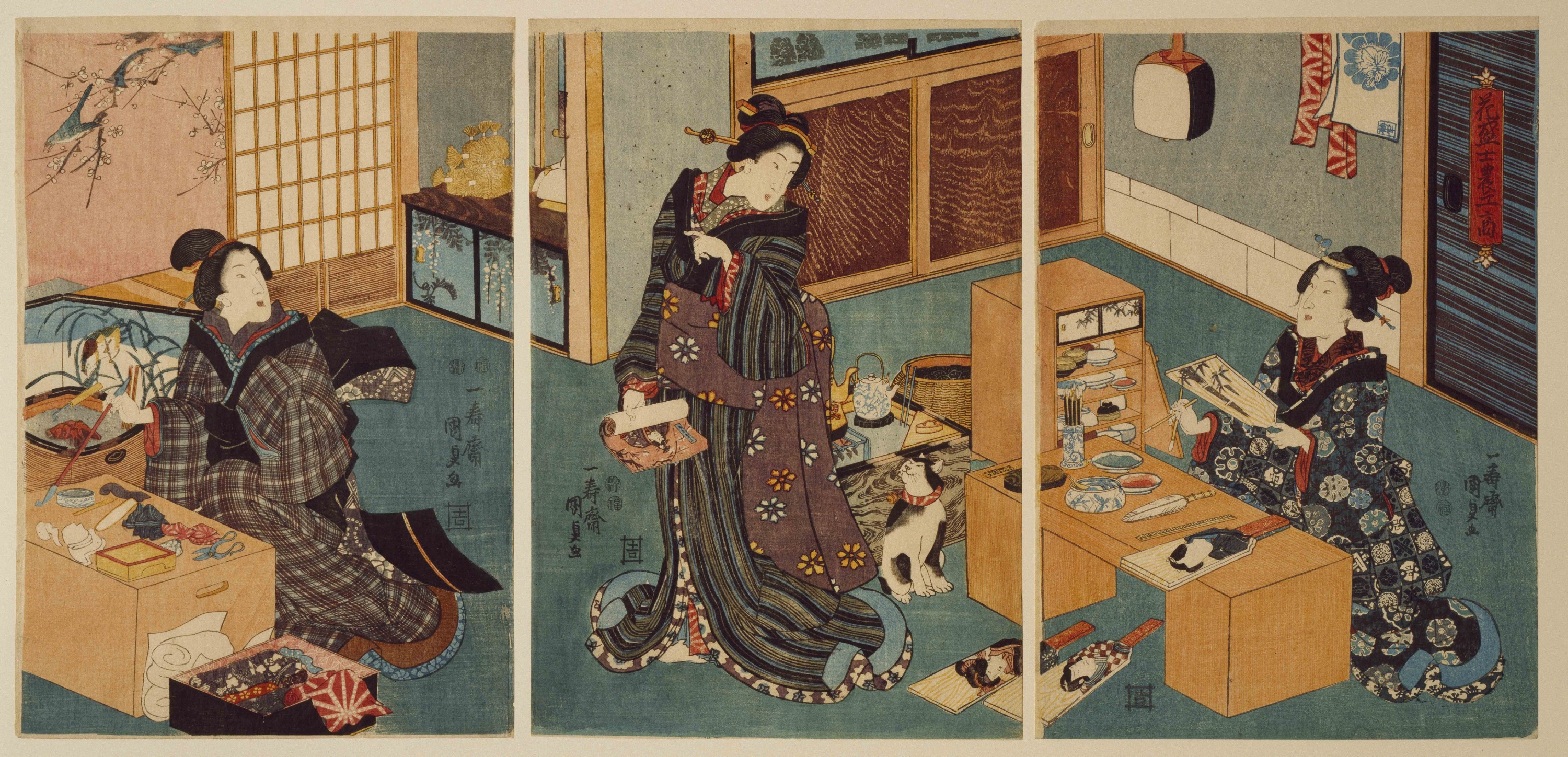 Triptyque ôban, publié chez Fujiokaya Keijirô, 1848-1850 env.