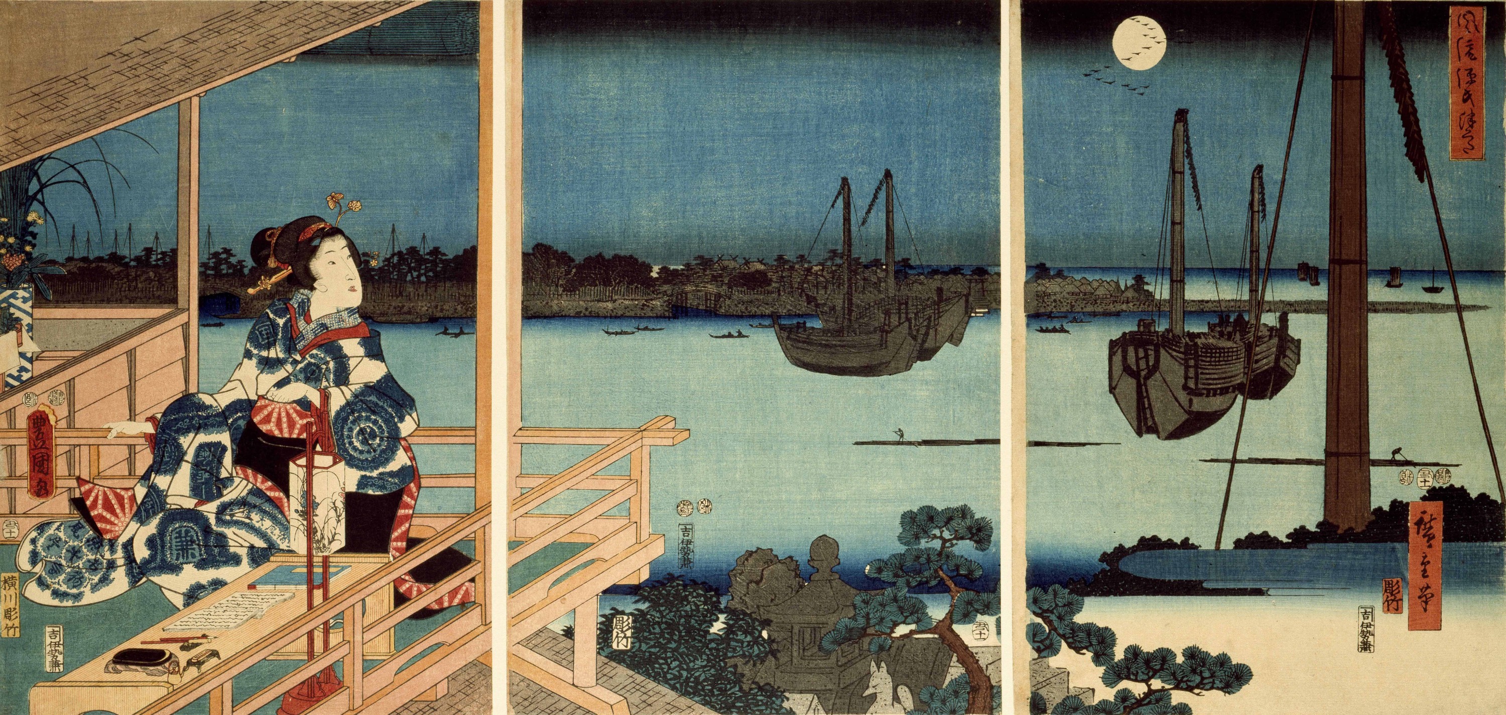 Triptyque ôban, publié chez Yamaguchiya Tôbei, 1853