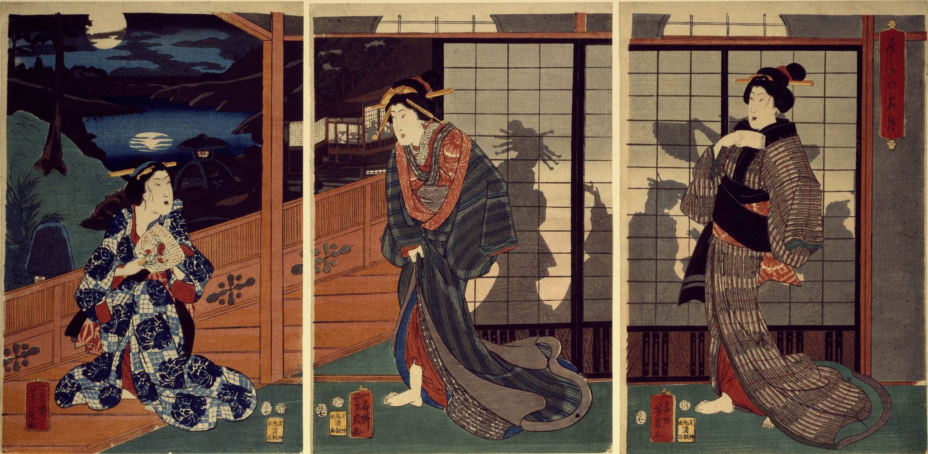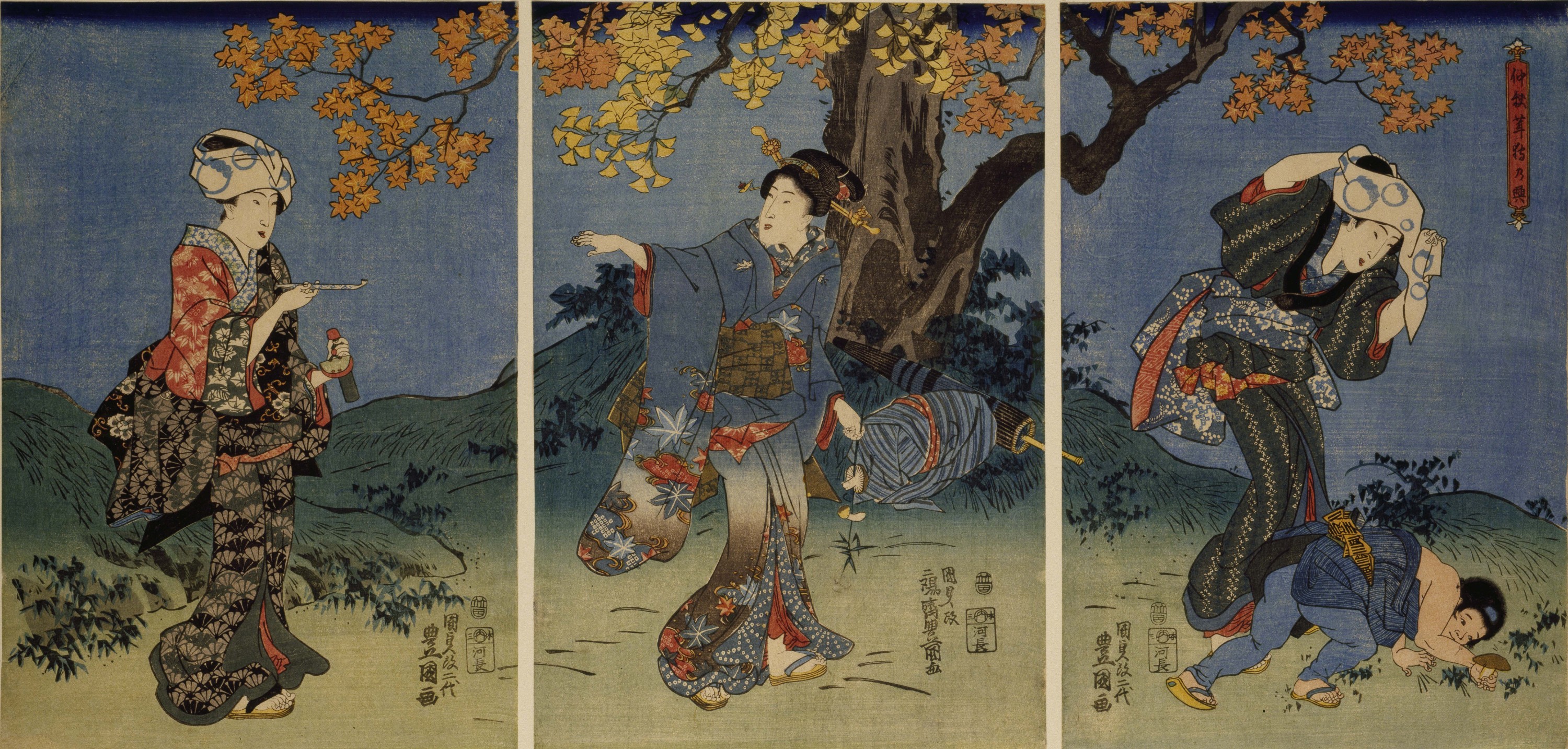 Triptyque ôban, publié chez Maruya Jinpachi, 1845 env.