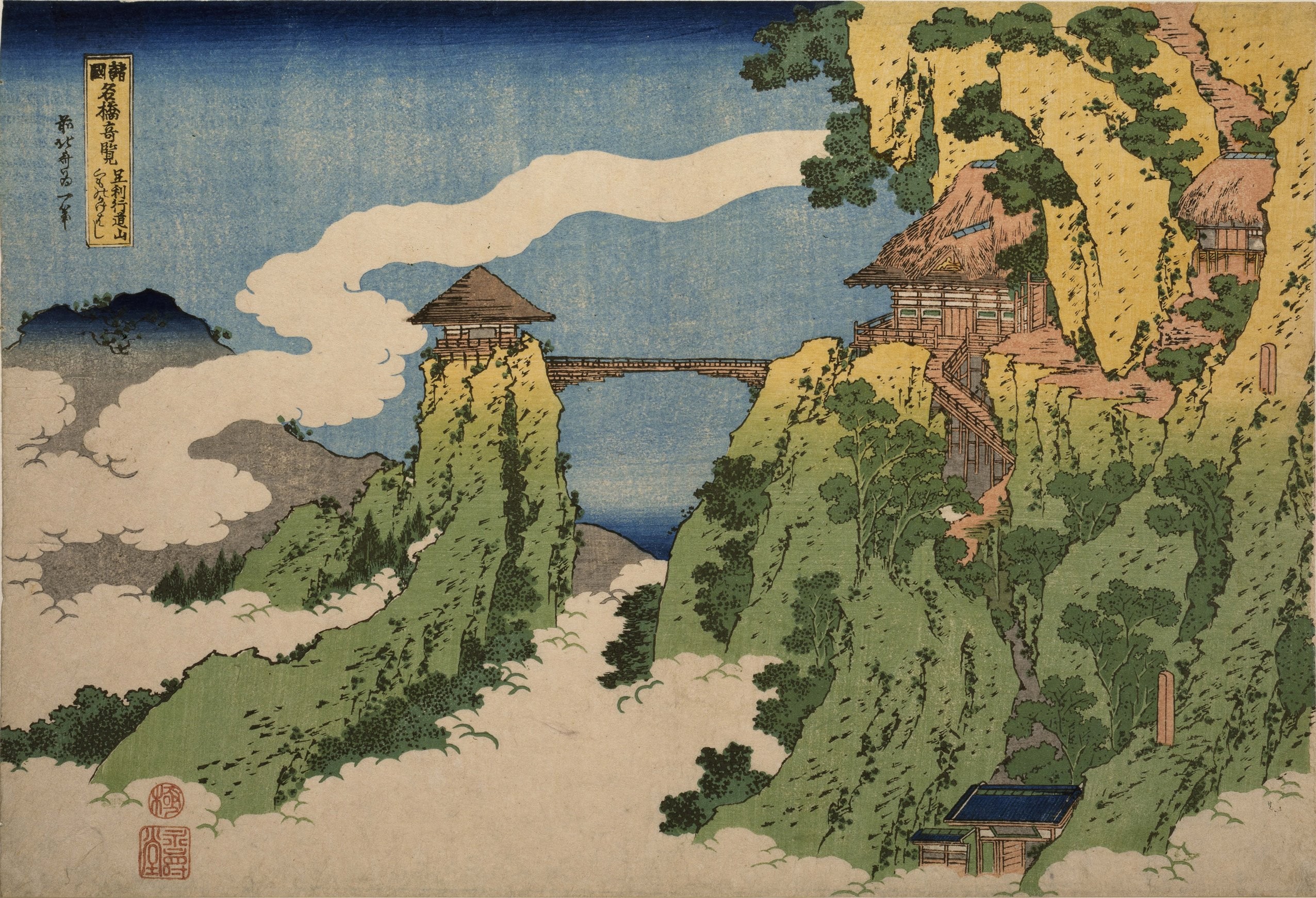 Le Pont des Nuages suspendus au mont Gyôdô, Shikaga, de la série Vues remarquables des ponts de toutes les provinces